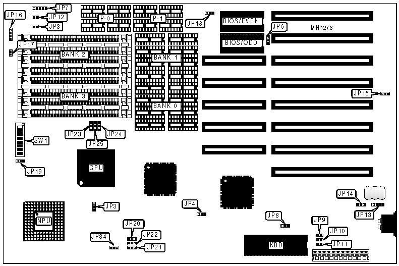 JP20 pins 1 & 2 must be closed if 4M x 9 SIMMs are used.