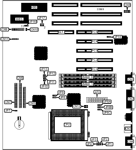 Note: Board accepts EDO memory. Banks are interchangeable.