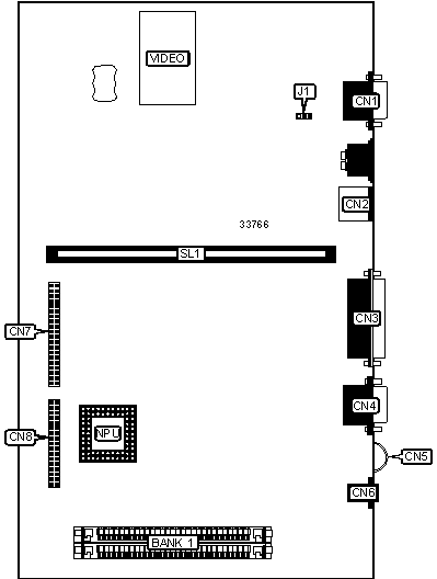 Note: Board accepts 512KB/1MB of video memory. The size of the chips are unidentified. The number of banks is unidentified.