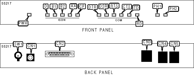 25-pin serial port, ISDN interface via RJ-45 connector (U or S/T), power