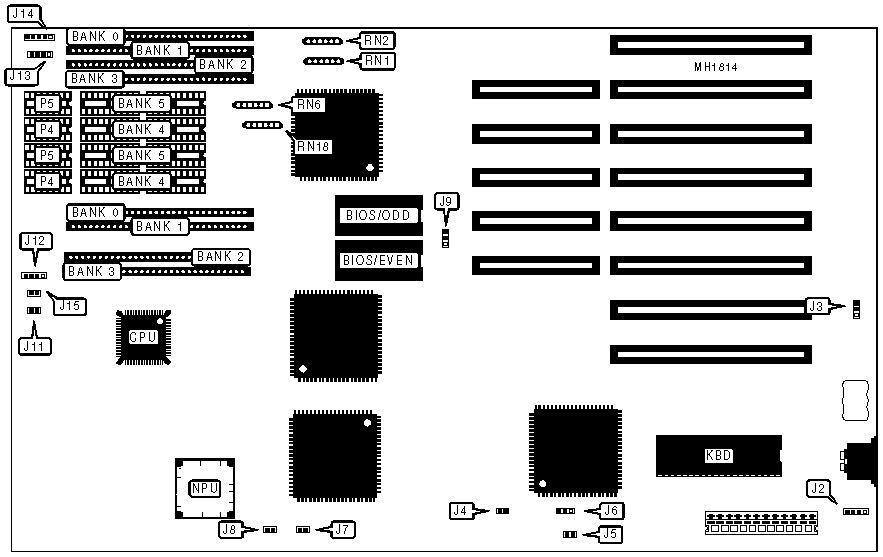 Note:The resistor packs RN1, RN2, RN6, and RN18 need only be installed if you are using DIP memory.
