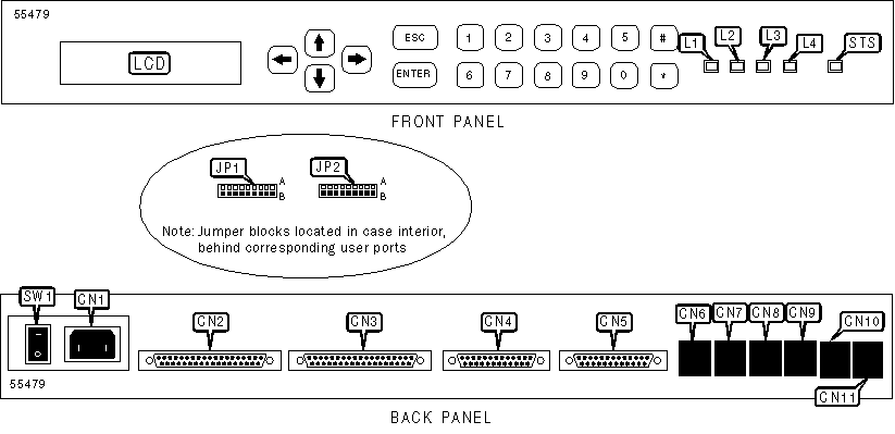 Power, 37-pin DTE ports (2), 25-pin serial ports (2),